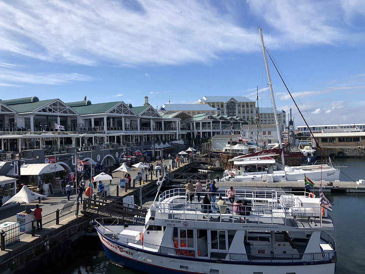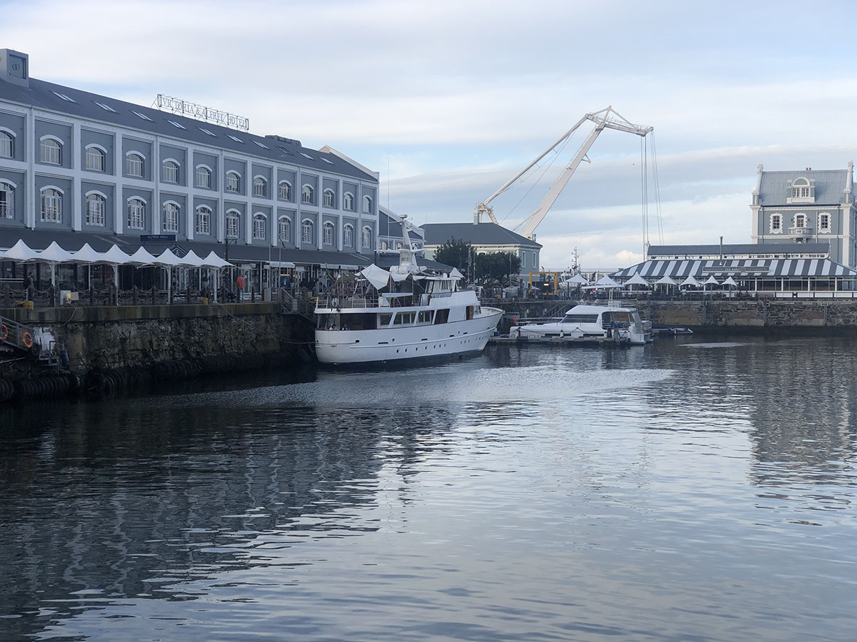 Waking up Asareh is able to shower before the water can even boil, we are totally out of LPG, but that’s alright, we still got coffee. We start motoring south towards our destination of cape town. Asareh has booked us in at a special hotel for the night. Little did I know we would be staying on a BOAT!!! How awesome is that. Well a yacht actually. Very cool place. We unload and settle in then decide it is time to hit the waterfront. VA waterfront has quite a few decent restaurants so we quickly find sushi and dig in with a G&T to wash it down. The weather is lovely, the view decent.