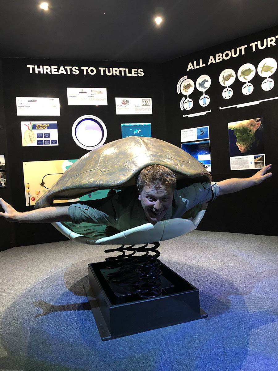 Next on the list is the Aquarium, this is a must see. Heaps of selection… that makes it sound like a buffet… and even some interactive displays. Getting up close and personal with the clown fish is fun and who can resist getting in a turtle shell. And for once I am not lying about it actually being my birthday!! So the photo is legit. You get these all over Africa, we grab a copy at special occasions.