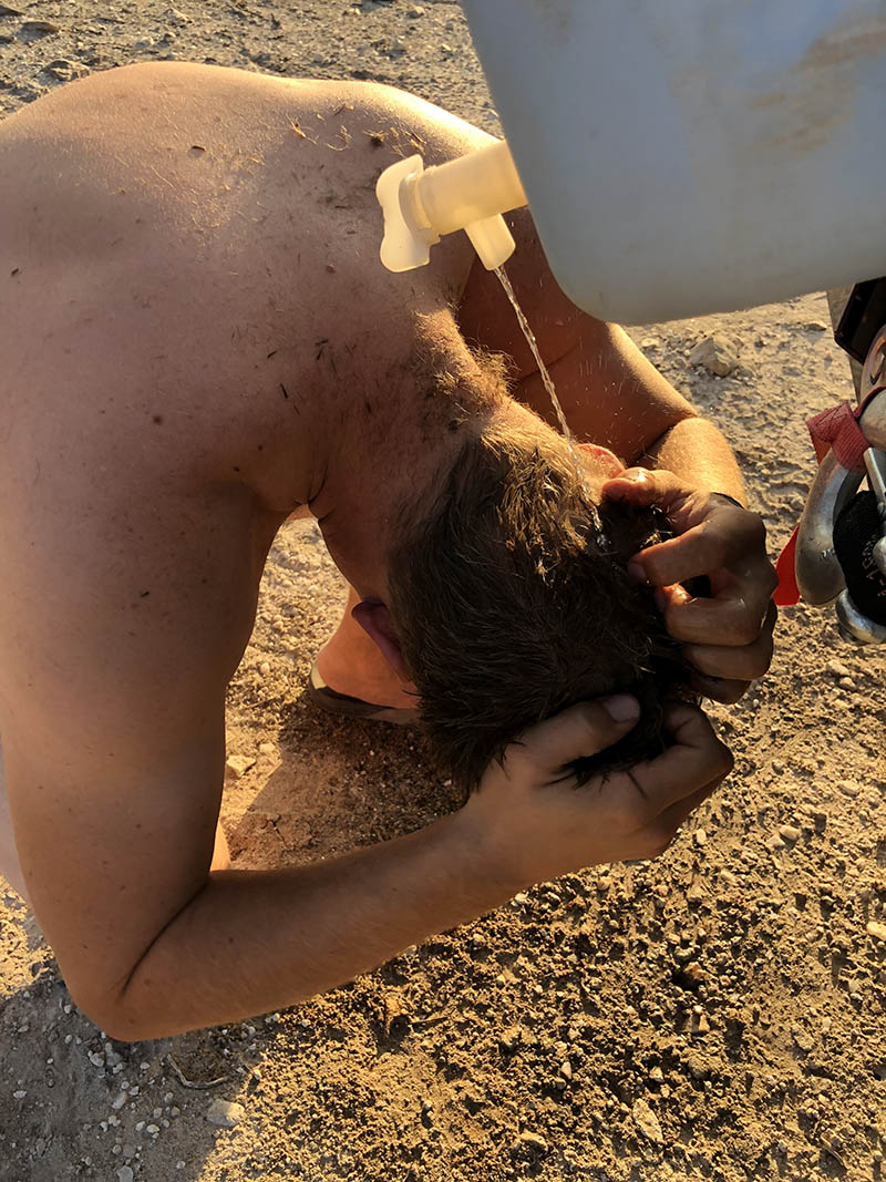 Crossing a vet check we see tons of giraffes. Turning off the main road we hit a trail, and wander well off the marked roads. We find a nice place to park up. We are tucked away and begin setup. The wagon is teetering on a pile 3 rocks high to level the tent. The flies are horrid, not often we have this issue, but it’s all good. Its haircut time for me as my mop is getting out of control. Spot on job by Asareh. We reheat the potato rice and make some fresh salad for dinner. We find a heap of wood but don’t burn it all. So one lucky explorer will have enough or a night themselves.