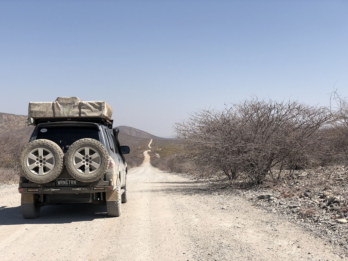 If you want to travel on gravel in Namibia, you can cross the country easily. I follow my map and end up at a massive gate, we gain access and continue to a house that looks like it’s a 5 star resort, I ask if we can continue through the road to reach another joining road, I get an answer that jogs around just saying no. The usual, it’s too hard for you, no ones used it in years, That’s fine, can we go or no? No, okay we turn around and head back.