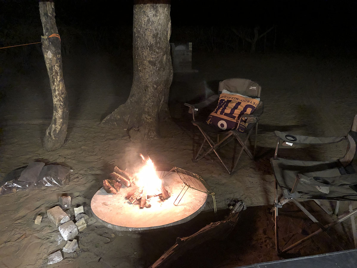 On route for the rhino sanctuary we stop for a quick bite on the side of the road then arrive around 3pm, grabbing camp spot #6, and with wood at 25P for a pack, we unload a bit of weight and head out for a game drive. Spotting rhinos right off the bat, and even some giraffes drinking pee. Nature is pretty cool sometimes right. At the bar we have a few springbok shots and hot chips before making our way back to camp to cook chicken and relax around the fire.