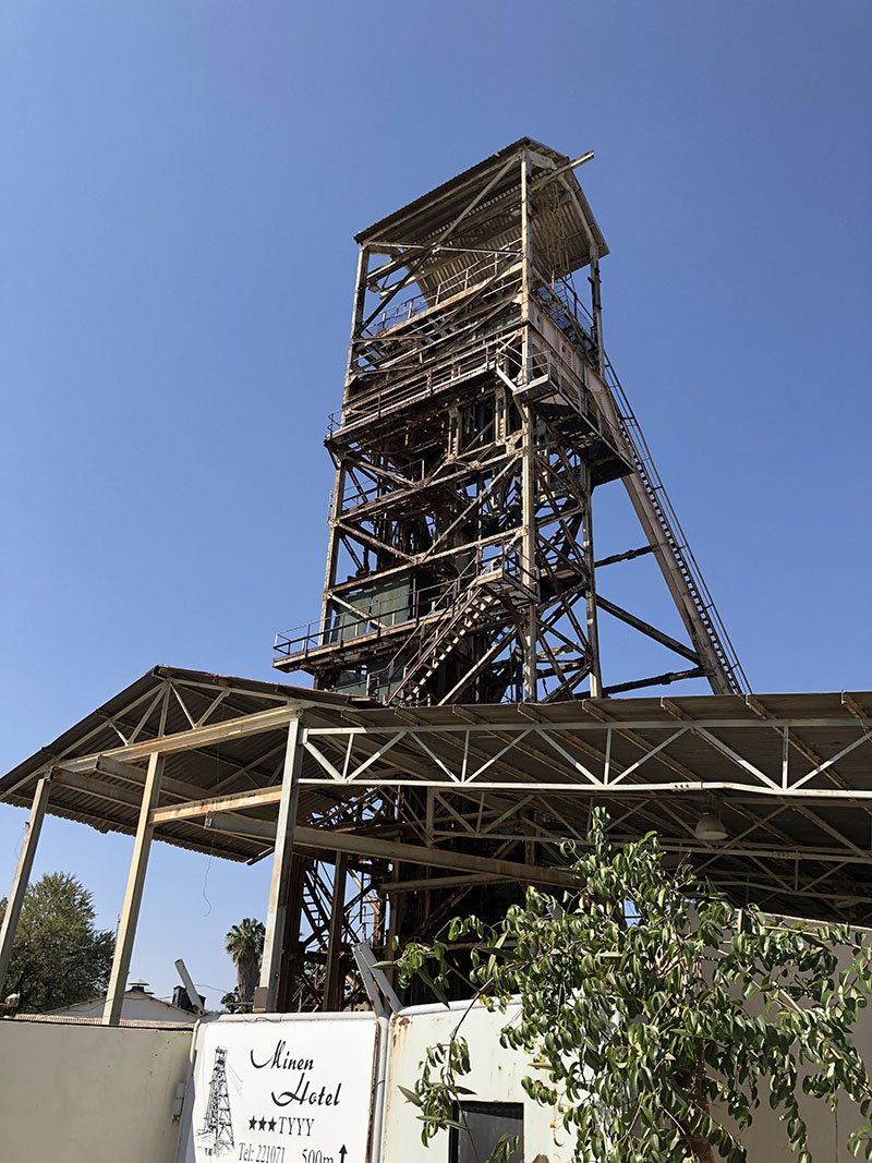 Pointing the wagon north we prepare for the biggest drive we have yet faced… 60kms. Brutal. We suggest a break at the 30km mark. The short drive is welcomed, as we arrive nice and early to camp. Pulling into town you see the old mine elevator so we go take a look, it was flooded in 96 during a strike and never reopened. We cheat and eat at the restaurant for dinner. Shots shots shots!!! I start with the springbok shot, then the Namib shot, and continue working my way down the list. Yet we are still able to walk a straight line home.
