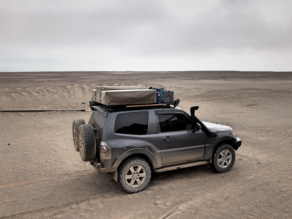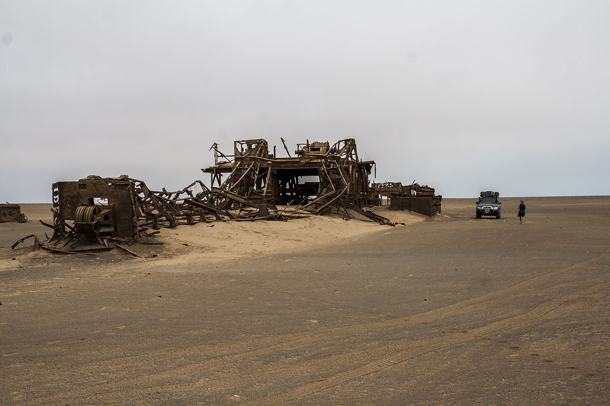 Our plans for the rest of the day is to quickly zip out to view an abandoned drill rigs and a few ship wrecks along the skeleton coast before parking up, The lady at the gate doesn’t want to let me in, as its 1:30 and they won’t let day drivers in after 1. I explain my situation and how I just want to go in 40kms and spin back around. What a fight. But in the end my persistence pays off and she finally lets me go through the gate. We hit the open road, which is in very good shape, salt road and not rutted so we make excellent time.