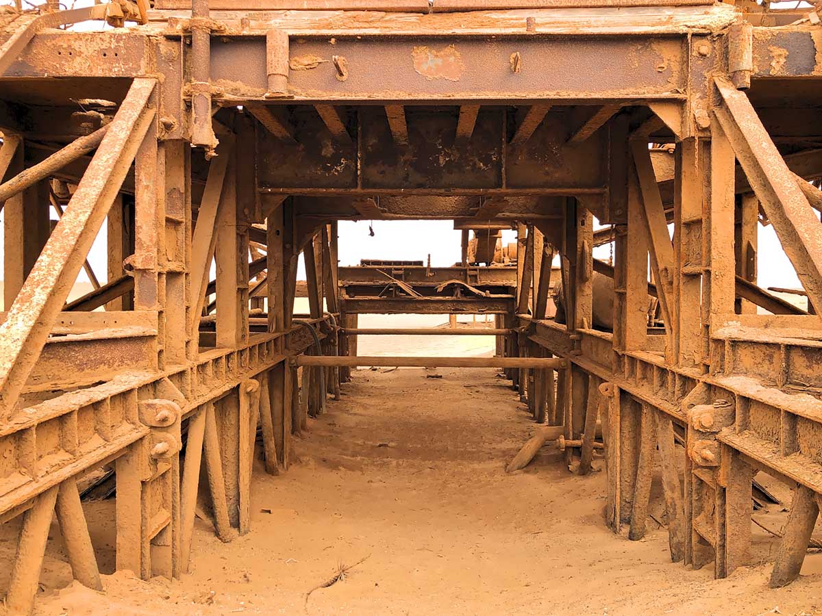 Pulling up to the rig it is incredible to see how the ocean salt is destroying the steel, there is almost nothing left. Although 50 years neglected will do that. It apparently went bust when it didn’t hit oil, the literally left everything behind, even the pipe racks. Next up is an old boat that ran aground. Most of the boat is missing but the engine is a bit of sandpaper away from being start able.