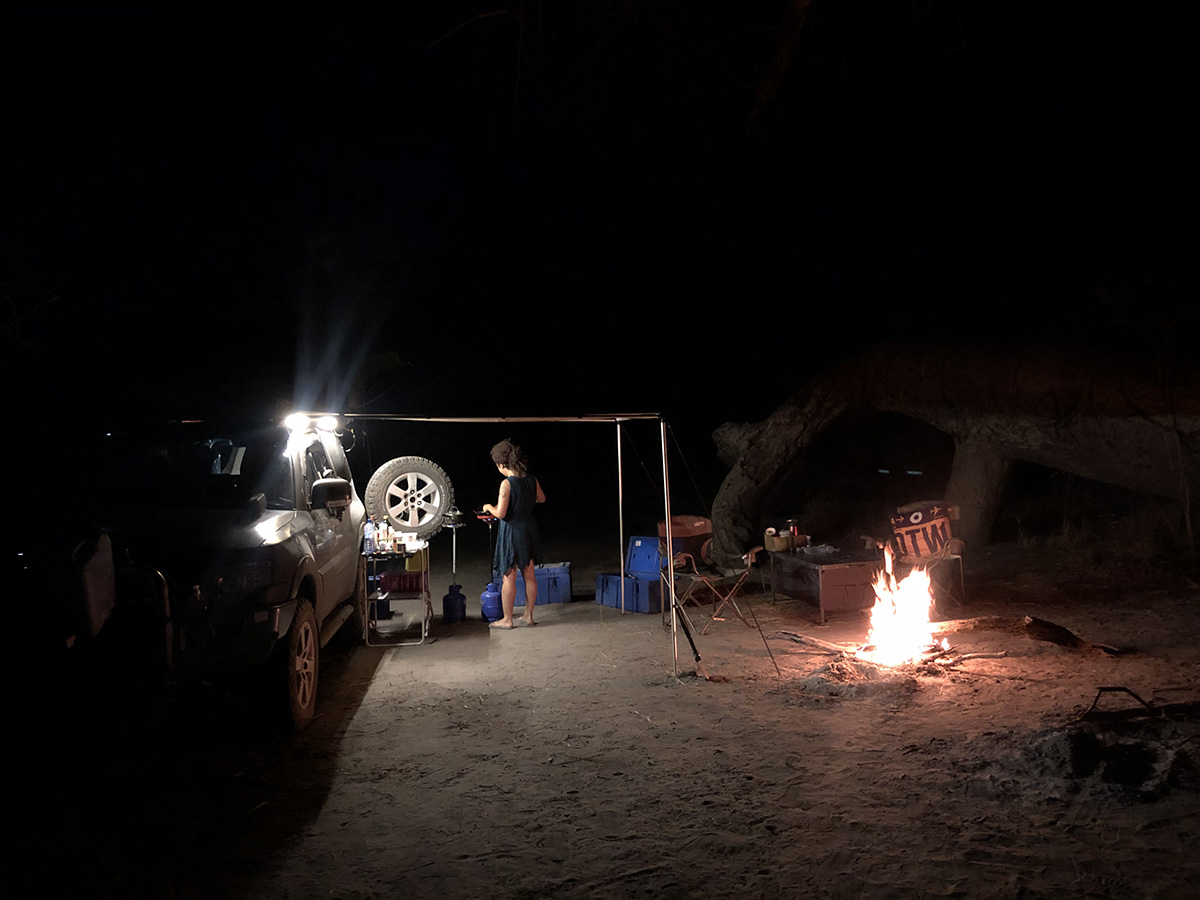 Parked up at camp we get a small fire going and enjoy dinner. I spend the next hour cutting Asareh’s hair to remove the extensions. Fine in town.. camping and dust they are no good. I find a trap door spider and we enjoy a nice warm sleep, first night we actually can open all the windows in the tent.