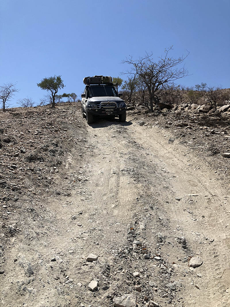 Up at 9am, we are already packed and head to the start of the pass for our coffee and cake. Pulling up under a tree a local comes buy and we give him cake which we see him share with his family later on up the track. There are locals/Himbas everywhere here. Its very lively for such a remote place. Hitting the pass we are impressed for the start as it goes uphill along an edge, making it a little risky. But it quickly becomes a slightly rough but easily drive able road. But the view is worth it. And some areas do require some skill to navigate.