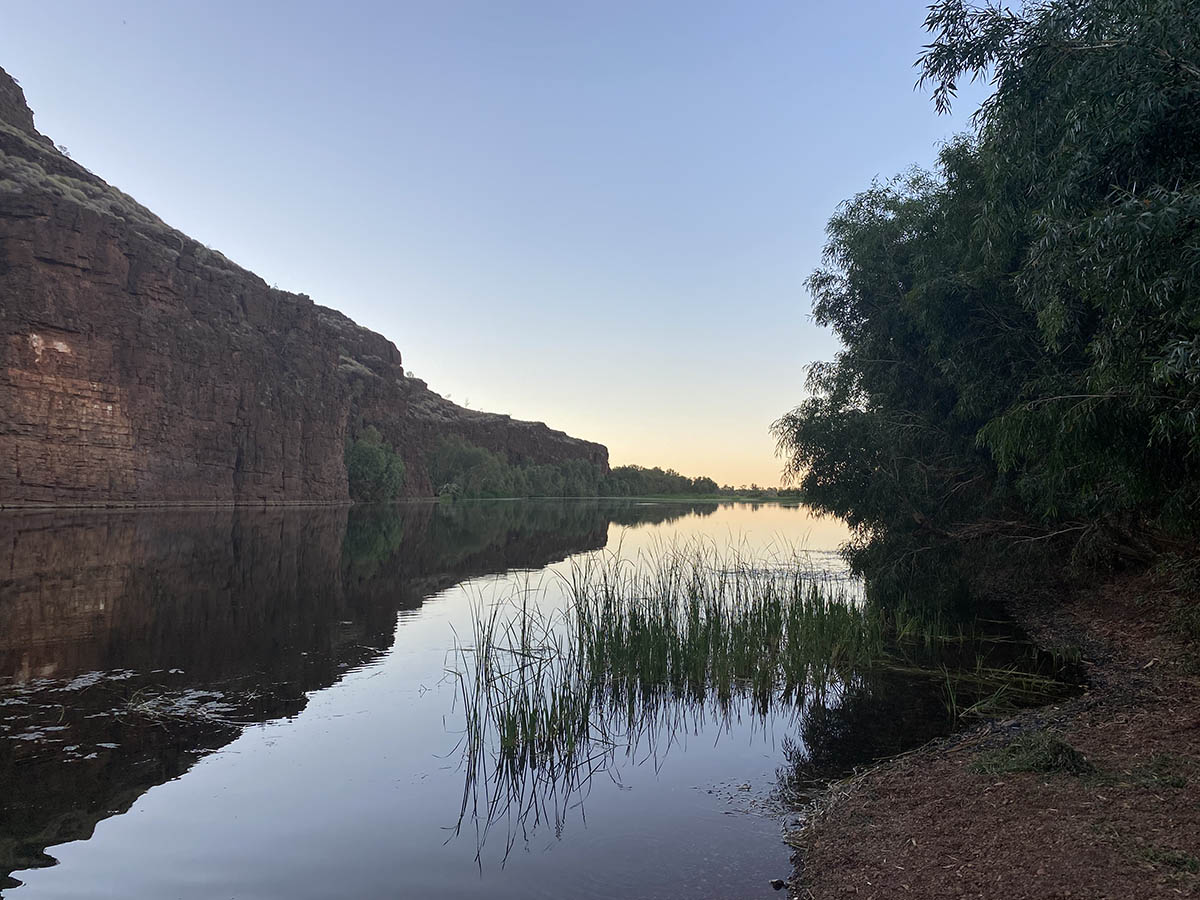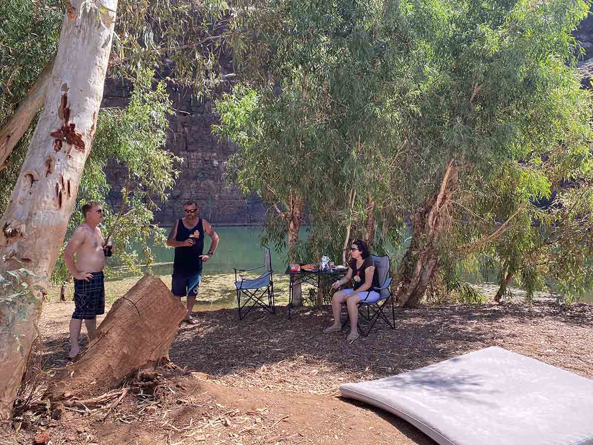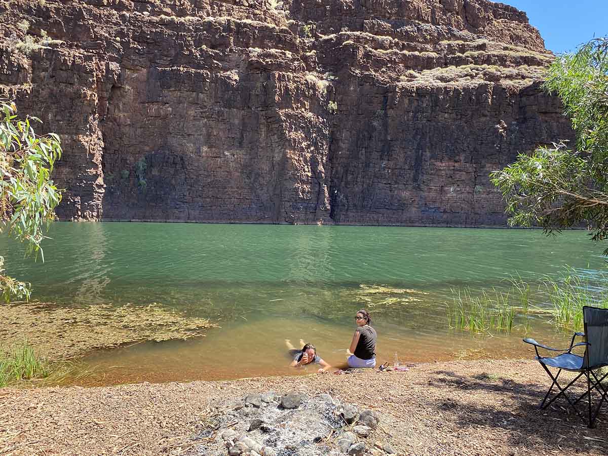 Waking up as the sun warms the swag we have enjoyed a surprisingly cool night, blanket required. So we are sleeping good on this trip so far. I make an egg sandwich to get me moving and stand near the water and stare at the fish swimming back and forth as Asareh and megs take some more photos of the area.