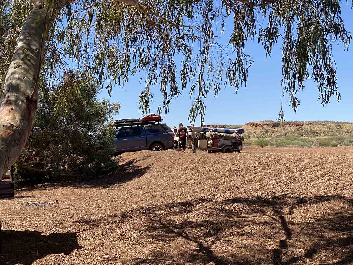 After a few kms of zigging and zagging through the gorge we hit pavement for a mega high 14kms about before we turn back onto the gravel and head into our campsite. Pulling up we luck out and find a great spot in the trees, the gravel is super soft but easy enough for the vehicles, mine being light, and Hutchy having bulk power on tap. We set up and quickly get in the water for a drink.