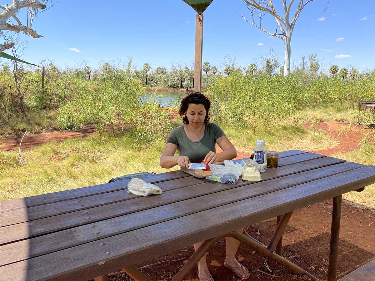 We crawl out of the swag to see most cars are already packing up and on route to get there travels started. Karijini has been very busy due to covid keeping everyone in the country. But it is still worth the adventure. We grab a light brekky and coffee before heading straight for Tom Price to refuel and restock. Cant forget to stop and have a park beside the old haul truck and a coffee before trying out the new Red Dog Way that follows rio tintos rail line up to Karratha. This is a freshly opened dirt road that cuts about 150 or so kms off that drive. You used to be able to use it with a permit, but now it’s a free for all. The road is in decent shape and there is a lot of construction with it planned to be fully paved by 2022 I do believe.