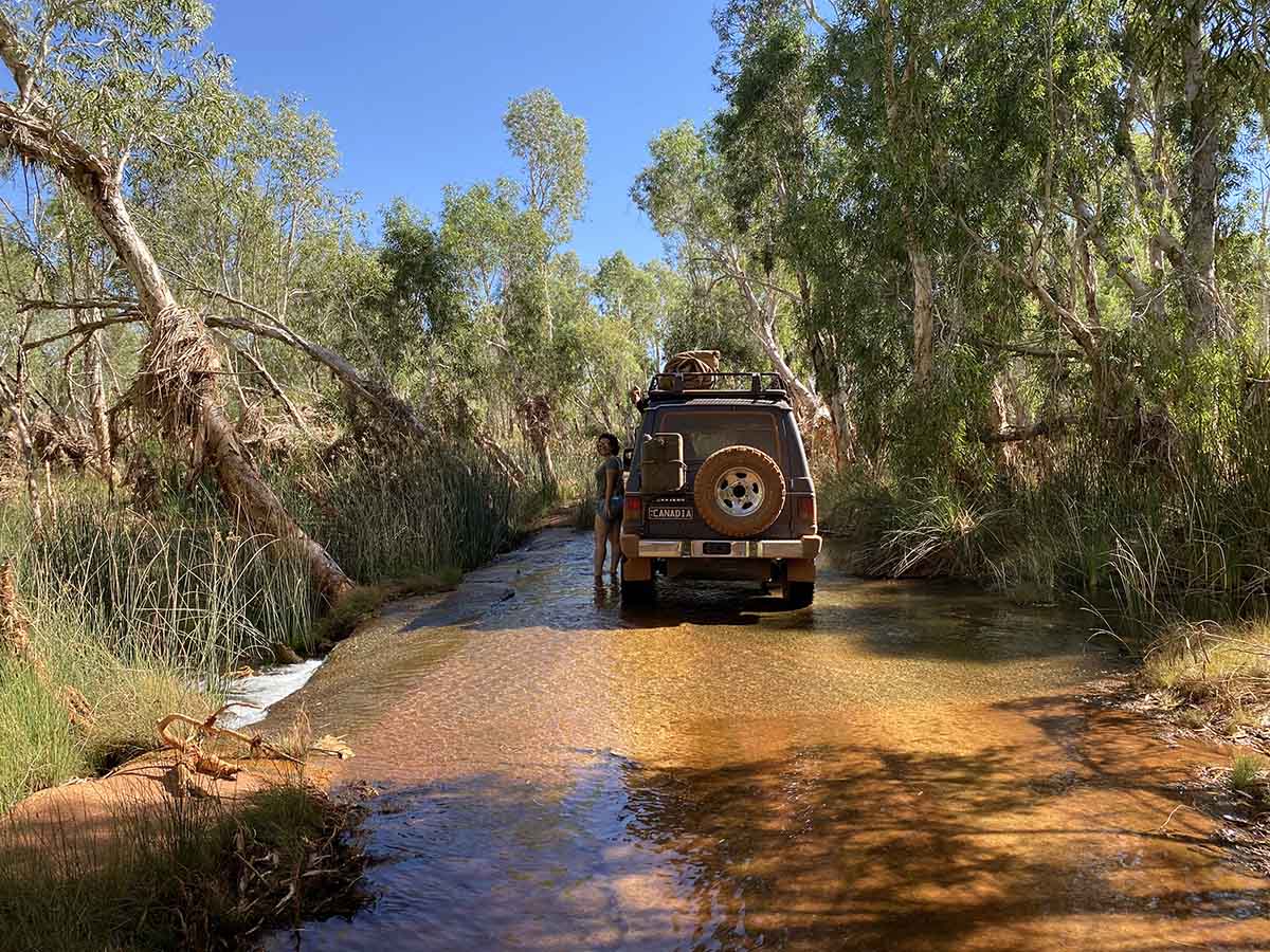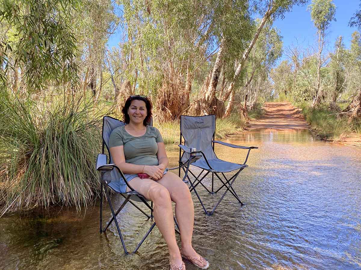 We don’t get far though…. Maybe 2kms down the road and it happened… just kidding. Mitsus don’t break down, we just found a nice place to sit for a 30 minute break in the river. The water flows around us, the shade is great, temperature all around is spot on. Even the wagon looks relaxed. Upon traffic showing up we pack up and head out. A small wander around the park leads us back to paved road and we put the hammer down (95kmh) and head to Karratha.