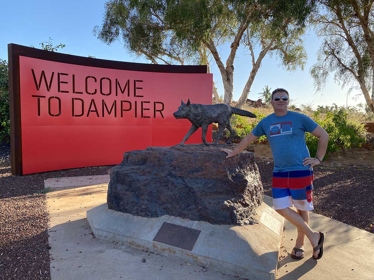 Pulling into town we quickly head for the hotel and shower up along with pop into the pub for a feed and beer. After some relaxing and laundry, cant wear that red shirt everyday, we head to Dampier to see red dog. This has been years in the making. Its been talked about, I worked right next door even and never quite made it. But here we were. No tears unlike that damn movie. Brutal. We snap a few photos there before heading to the beach to see the port, second largest in the world for bulk exports.