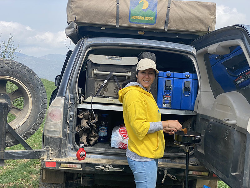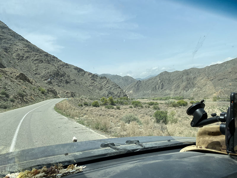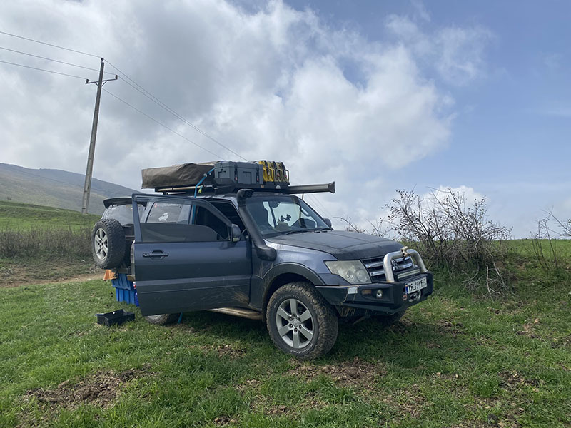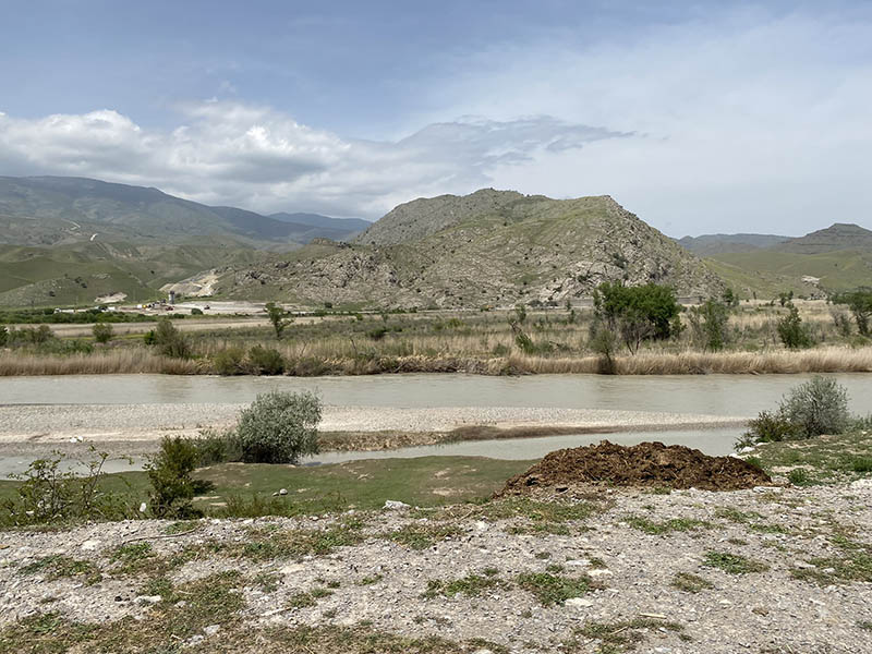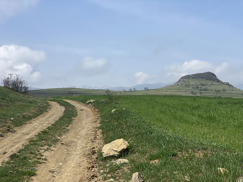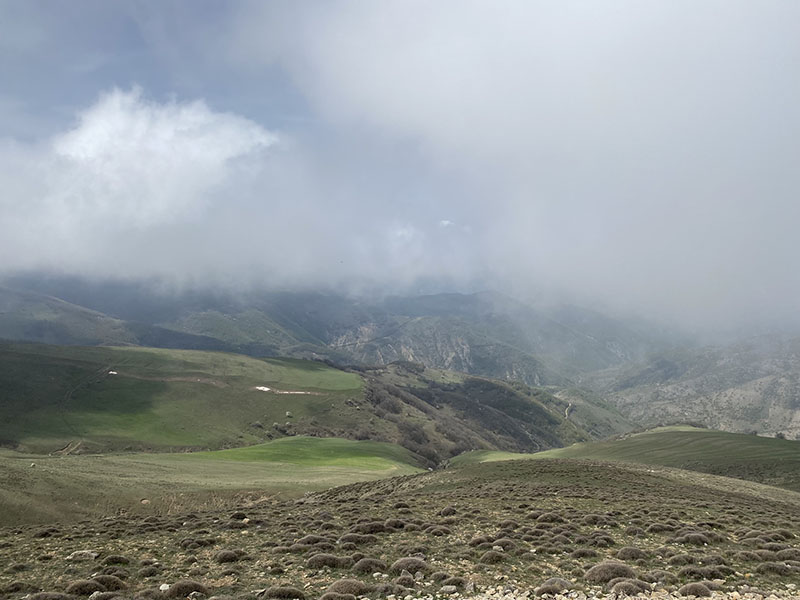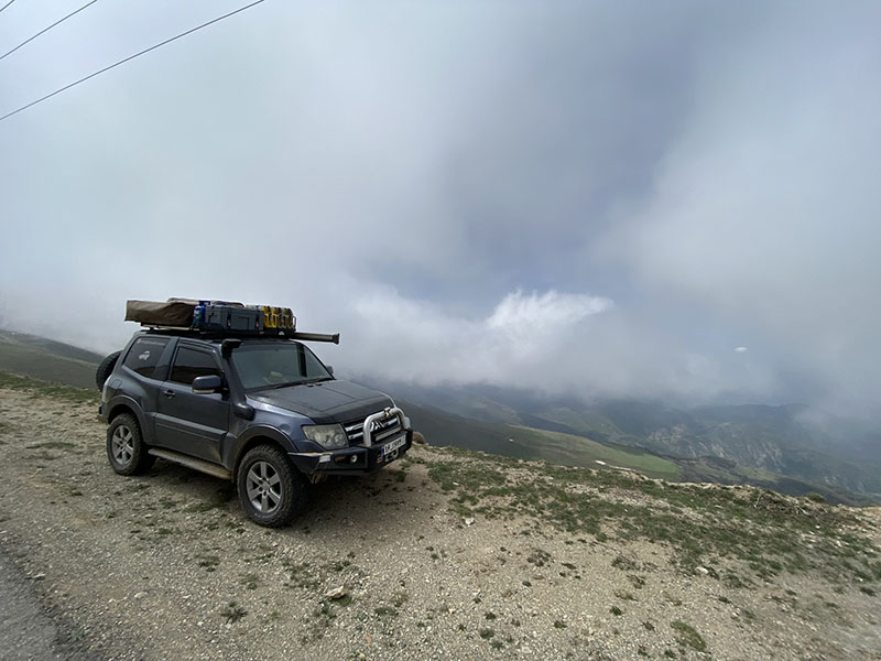 Time for breakfast, so we find a nice field to pull up in and set out making eggs and sausage. A quick and easy meal while the cat plays in the long grass. Our drive today winds along the Armenian and Azerbaijan borders, which are all fortified, fenced off and have some serious infrastructure for the army near by. The Iran side is calm in comparison.