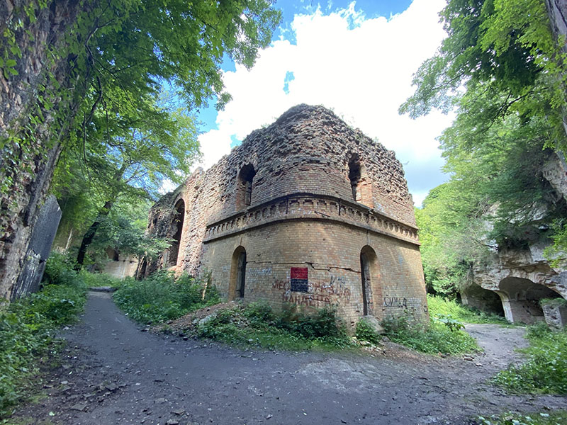 I would be lying if I said we did not stop for another one of those croissants that are crazy unhealthy before leaving town. So I wont, we did, it was amazing. We did enjoy the morning lazily strolling around town and finally left around 11. With such a late start we have not planned to go very far, and a target for the night is the Tarakaniv Fort, which was used by almost everyone during the wars, From the Ukrains, to the Russians to even the Nazi’s who apparently used it to conduct medical research to build the ultimate soldier. And I will say Asareh was not overly happy being inside and some areas did have odd markings on the wall where it looked like people struggled.