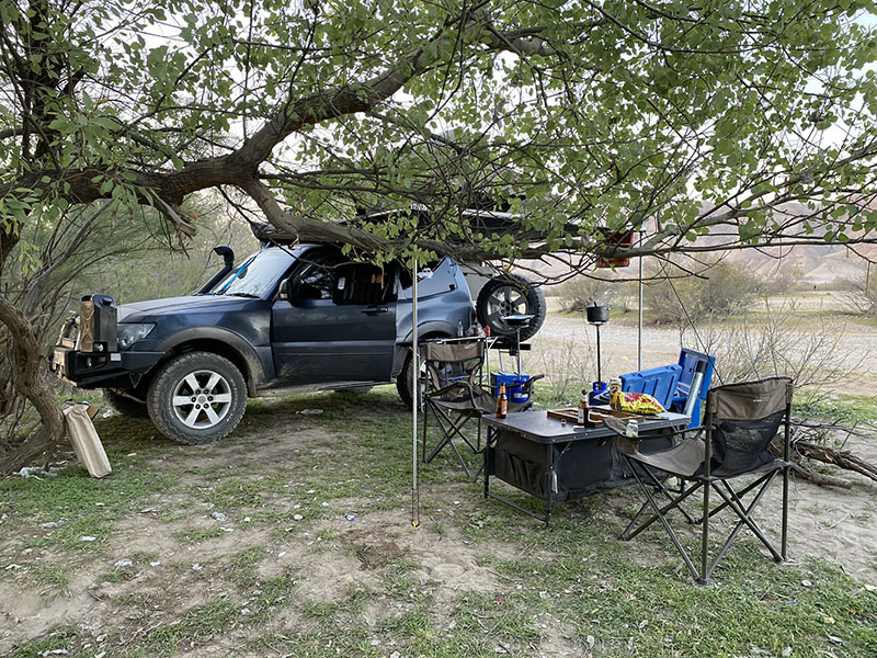 I think I have fund a nice spot on the map for camping, but the road doesn’t exist so we continue south till we find a dirt road cutting off the main road. This place is packed! People everywhere. But luckily all day trippers, after talking to many locals who pose with the car and take photos it clears out around 6pm and we get cooking. Noodly goodness tonight coupled with some fake beer and a stunning sunset over the river. We finish the night with a small fire and tea, little do we know the people down the road are celebrating a wedding. How I slept through it I don’t know, but they partied late according to Asareh.