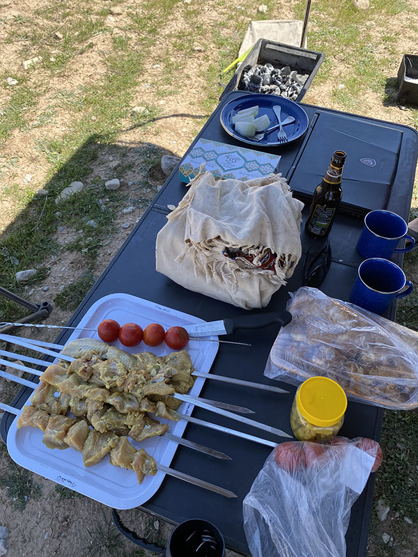 We drive back through the ice cream town, and of course, get a top up because we are adults and can make excellent healthy choices! Our goal today is to go check out a valley near Shahrak-e Vali. The drive is easy, and on the way, we end up having to stop for lunch, and my final engineering course. Online courses are great! Parked up in the sun, I get the charcoal going and we have bought some nice flavoured chicken to cook, the cat is off and wandering with me keeping an ever-watchful eye for larger than normal birds. Sad to say, but I’m sure he would make a lovely snack.