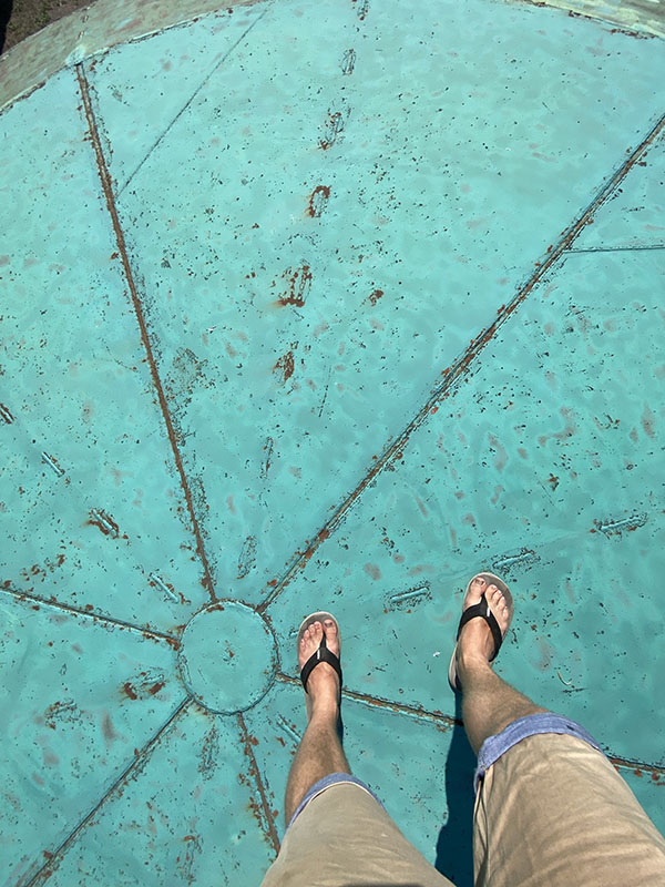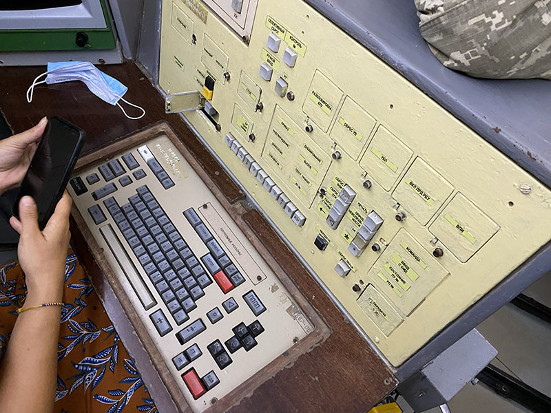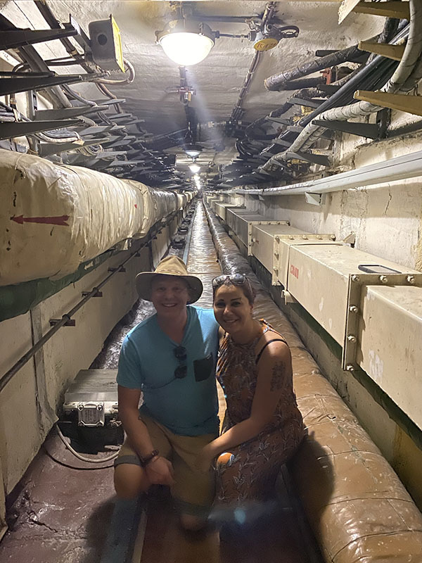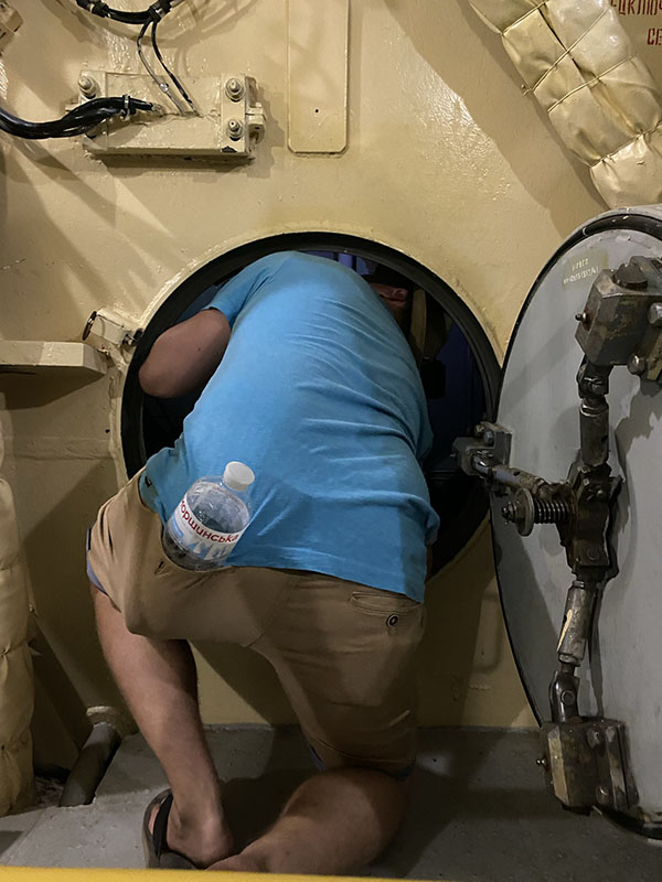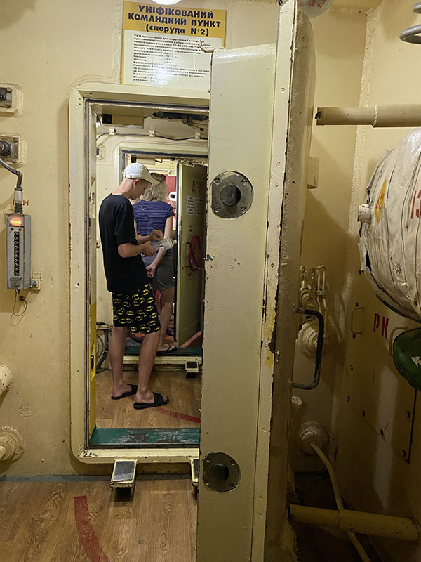 The second being 4 rockets from Moscow are launched, North, South, East and West, these rockets beam a signal down to all silos and start the launch sequency automatically. The last is if there is a loss of communication with Moscow there is a set time limit for recommunication before it is determined that they have been destroyed and missiles are fired. And speaking of firing missile… how casual? We go to the lower floor and do a mock simulation, were naturals at it obviously. We are not able to view into the missile silo for the actual missile but we can stand on top of the hatch for photos. A guess a bit of humor for such a deadly device.