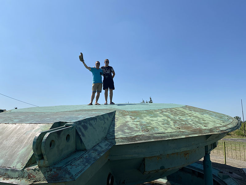 We end the day with a parting gift from our friends, a ammo box from WWII which now proudly sits on our shelf at home on display. Oh and some army crackers which were oddly good, but probably had the nutritional value of cardboard. We arrive in Kyiv as the sun sinks below the horizon. Our next big adventure is only 2 days away.. can you guess where we are headed?