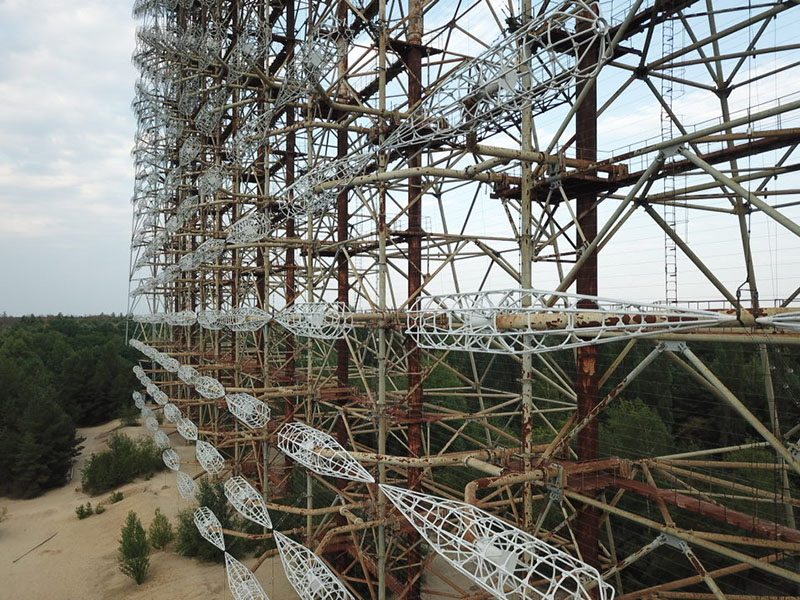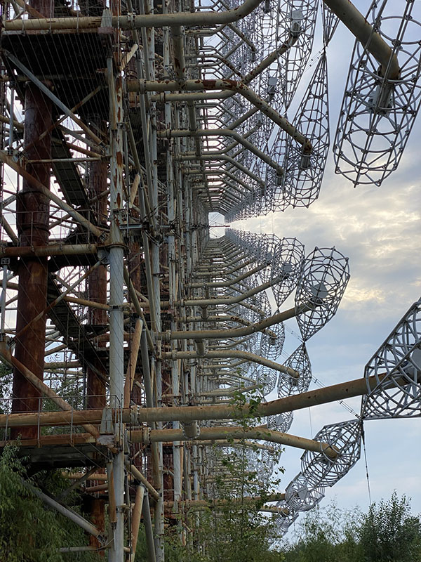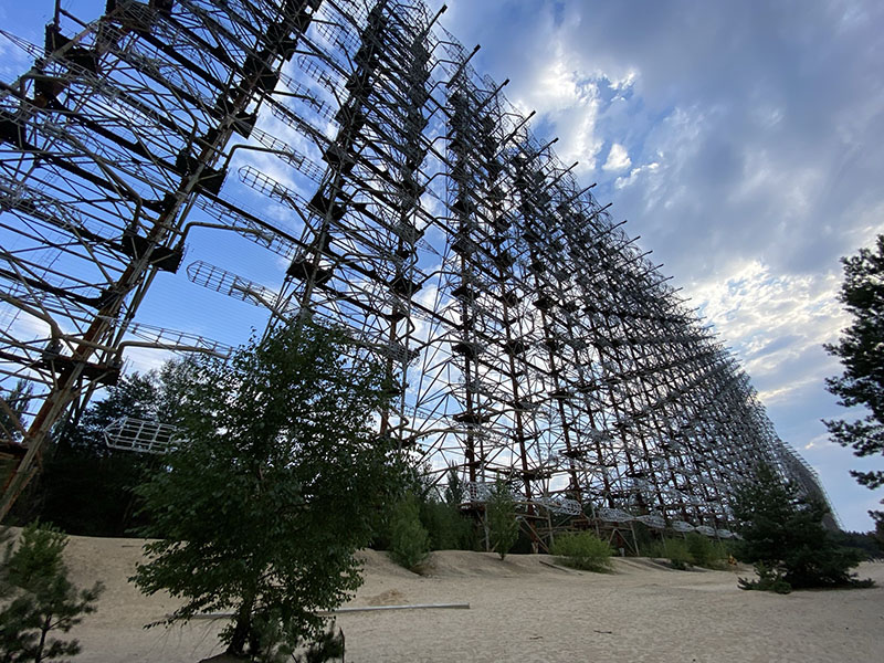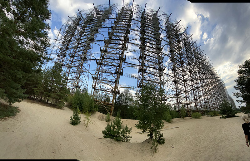 Outside of town is what is called Chernobyl 2, or the Duga radar station, which was a cold war era radar station for detecting ballistic missiles that may come from the us, It was so powerful it blocked radio frequencies in Portugal and was heard all over by amateur radio operators who dubbed it the “wood pecker”. We have heard the reason for being so close to the power plant is that is required the same amount of power as the town to operate. Which when you see the size makes sense. Its huge!! 700M long and 175m high with the smaller section being 500×140. The place is massive. Although Wikipedia says it is only 150m tall for the main section my drone stated exactly 175 as per the details given onsite.