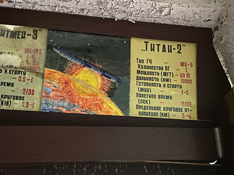 Inside the tunnel we walk the length, below is where the cables used to go, I visit the cooling room which was for the server rooms which are now empty. Included in the area is the training room for ballistic missile attacks, they have art work of what they think the missiles look like from the US and even China. With inf to back them up.