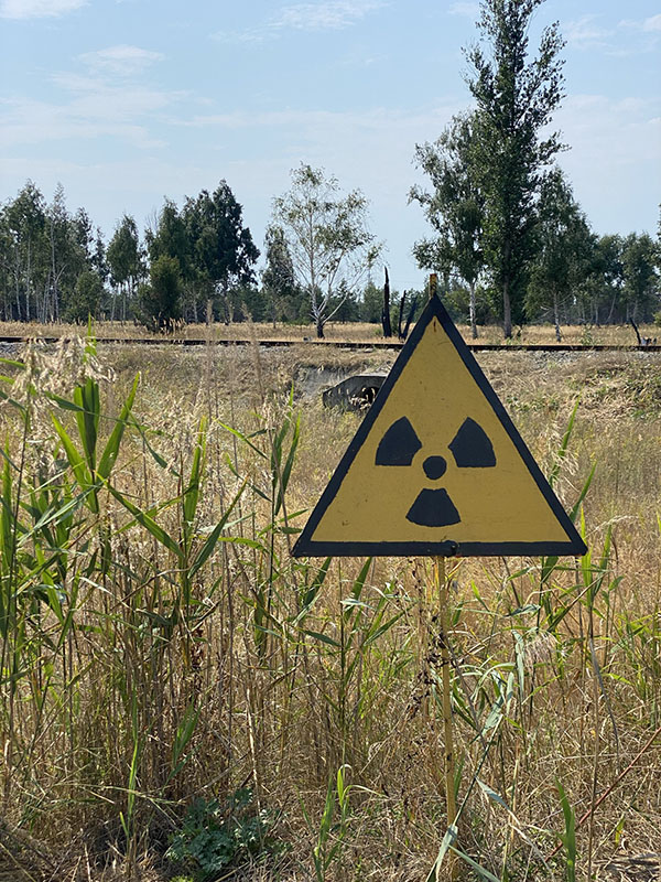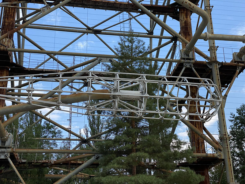 Driving a little closer towards Pripyat we get out near the red forest to test the area for radiation, we also get our first site of the sarcophagus. nothing to crazy where we stop radiation wise, but in the car the we are getting readings higher than outside while moving at 60kmh and through the vehicle itself. The ground is literal poison. We also see a waste transport truck and I am quickly scolded for taking photos outside of safe areas. Oops. Here is the photo anyways…