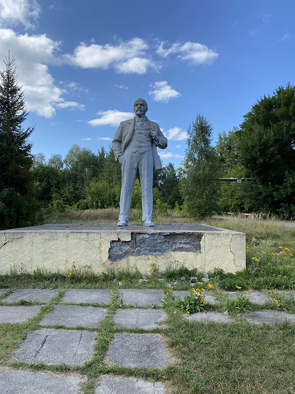 We then head into Chernobyl the town. Where we will spend the night. The hotel is called Desiatka, almost a 5 star rating. Here is the location of one of the very Stalin statues left in Ukraine. The hotel is quite nice and the meals are good. The local shop provides us with beer and snacks!