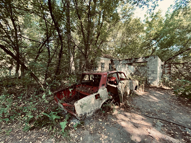 Our first stop will be the village of Zalissya, now long abandoned. I had heard there were Babushkas here you could bring gifts to, IE flower and staples, but they have since passed or moved due to old age. The town has a not so eerie feel to it as it has grown in and looks like a standard village that people just left. There are some artifacts still around, but a lot of photographers have come and placed items to look like a interesting scene instead of capturing the place as it was.