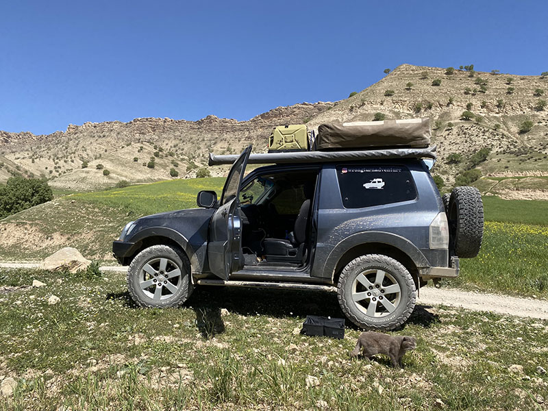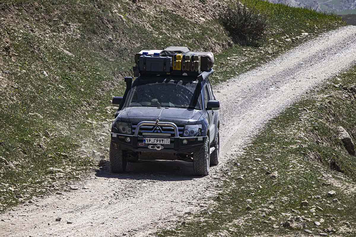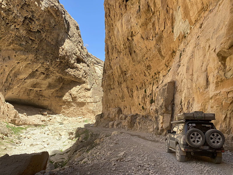 Passing through Eslamabad, Asareh spots a place that is selling Jiger kebab, aka liver kebab. You can get it wrapped in the lung bag which adds to the flavour. So, we of course stop for a little snack before carrying on. In these small villages it doesn’t take long for locals to notice an out of place vehicle, so we have a guy ask if we would like to visit an old fort, located due west in Hashemabad, we of course agree. And begin following him on his motorbike, it is worth noting a motorbike can go a lot faster than a 4wd on these roads and we need to push to keep. When we arrive, the gate is locked. No worries, he points us further west and says to follow the road and it leads to a tunnel, now after all this we learn tunnel means very tight canyon.