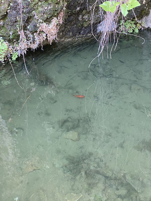 But we check it out, even see a lone gold fish in the water source. We do climb up to the water as it is important to do.
