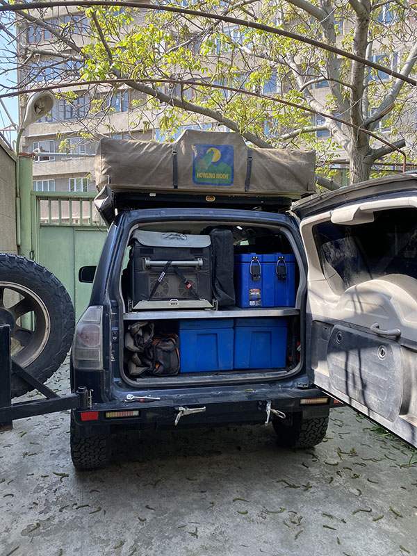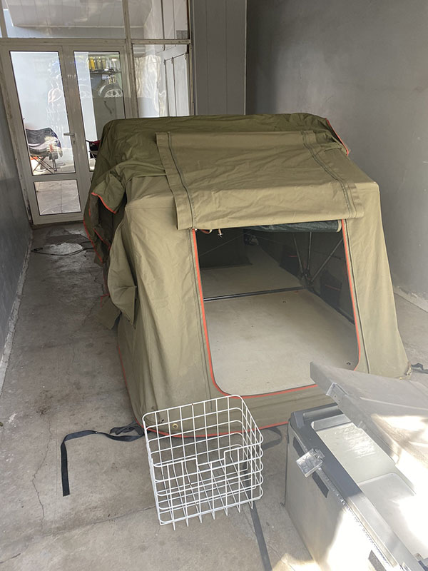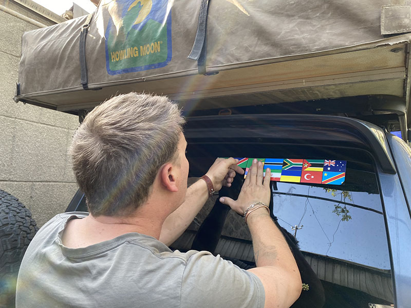 With our flight in 2 days it is time to strip the wagon down and clean everything. I mean even the tent comes off. We vacuum and wash the tent, the storage boxes, and even add the country flags we have missed.