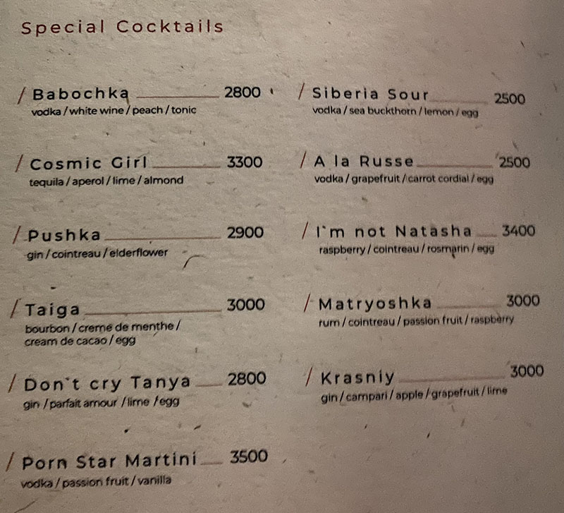- interesting drink names, I am assume it starts with im not natasha and finishes with dont cry Tanya