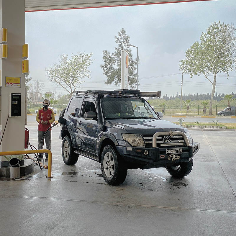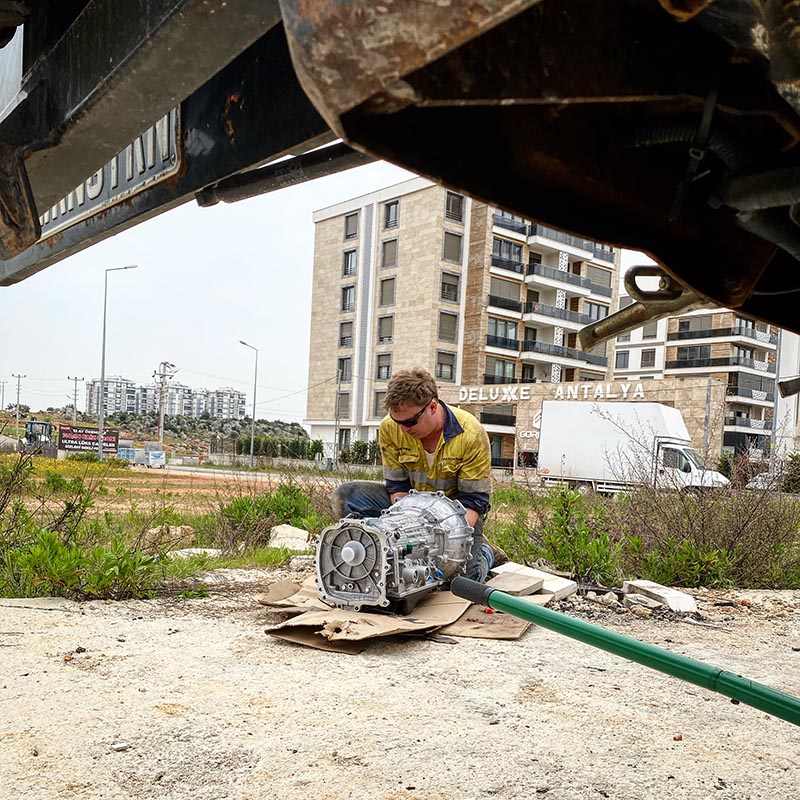 With our return from Iran (Blogs to follow) we decide against the rental car and make the plan to get the wagon running asap. With tools and oils at home, I call a friend who then tows the wagon out onto an old house foundation where I will begin my day. Starting early, with Asareh in tow we begin piecing together the gearbox, and with some muscle we get everything seated in place. It takes me till dark, but under the lights of the apartment complex I roll through the gate to the applause from our friendly security guys. Absolutely stoked!!