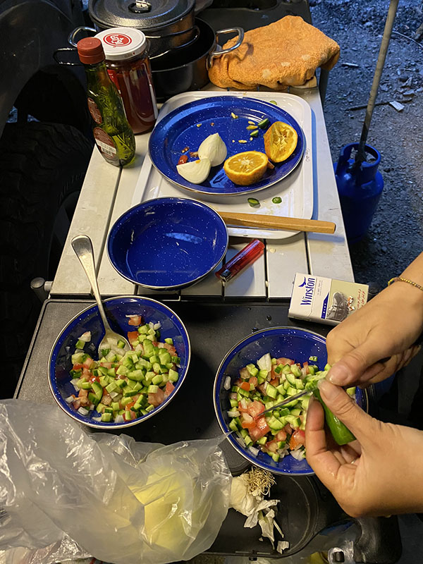 But luckily 4kms down the road we find their security hut and go talk to the guard to get permission to camp on the edge of the road that is gated off. He allows, and we are set. The guard even stops by for a ciggy later in the night and a bowl of food Asareh had prepared. He is clearly happy and enjoying himself. Any conversation when you work in the bush is good conversation. Lol.