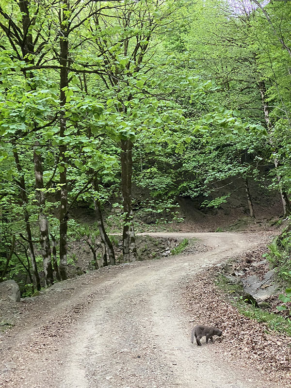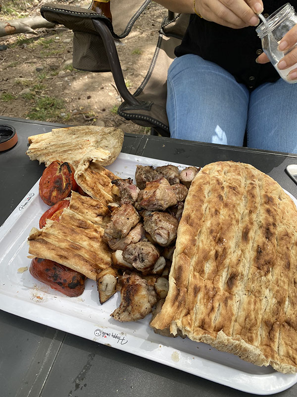 I saved a small tortoise, so feeling good we decide it is time to eat after another 2 hours on the road. We find a small shaded area by the river after a small foray offroad, the water is so cool, and in 38 weather it’s a life saver. Pina is struggling a little bit in the heat as he still has his winter coat on. So we are leaving the car running with the A/C on for him as required. Next time we will try to plan our moves better with the seasons so he is more prepared.