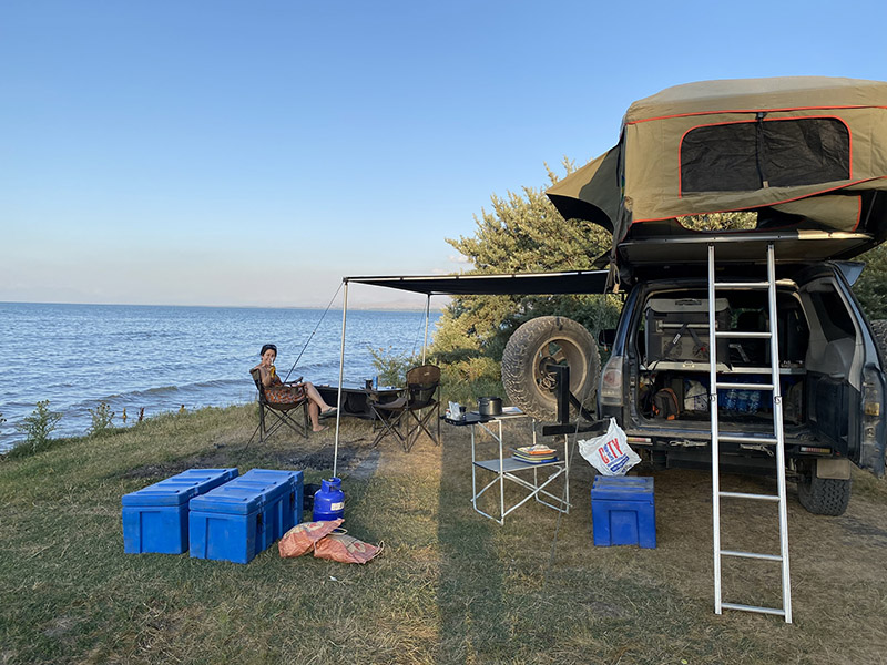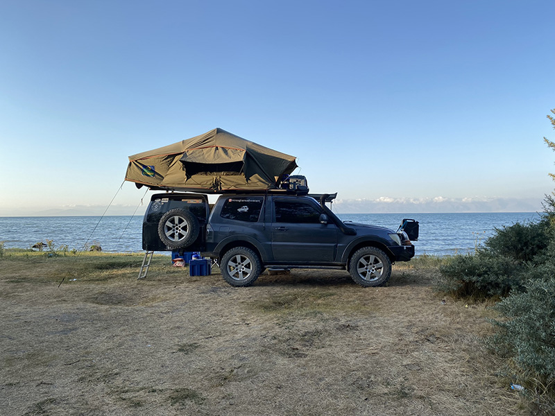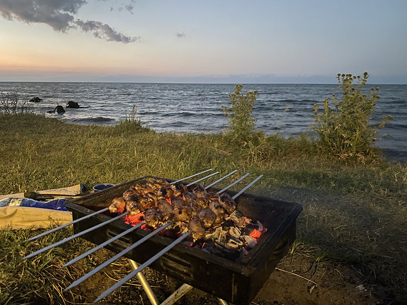 Even though it was a longer day than planned, we pull up at a decent time next to the lake with no one around. Step 1, let Pina run, Step 2, Mangal. We do chicken tonight as the sun sets. We can’t complain as the weather is a slight breeze and 20c at night so acceptable sleeping conditions.