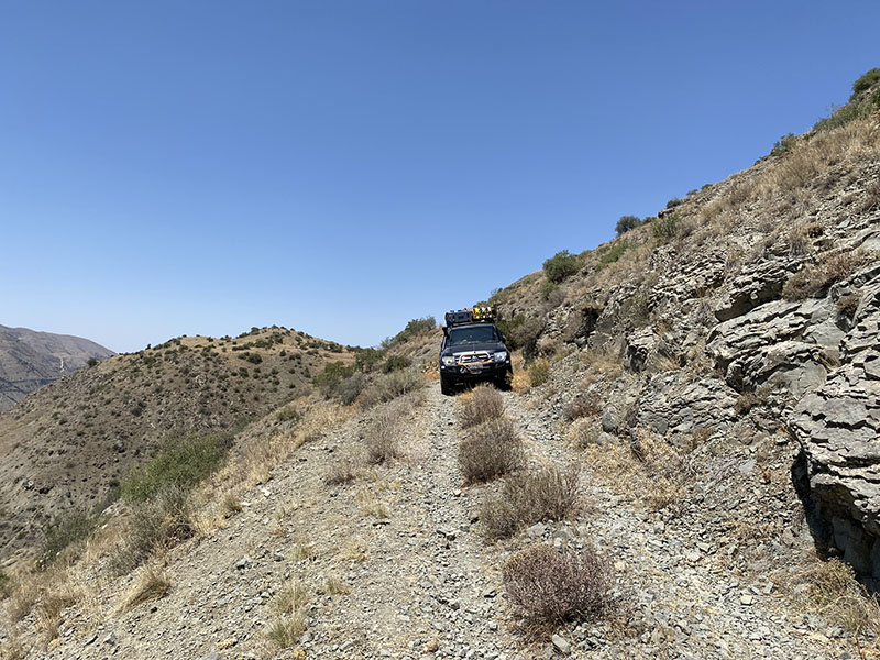 Packed up, since it is cooler out, I point us straight up a mountain to get the climb done before the day gets hot. The wagon does great if we ignore the fact the heater is blowing full tilt on us in 35c weather. But we push on for a stunning view, I have found a route across to our camping area, the road quickly gets narrow and sloped, let alone some of the drops we didn’t photograph. The wagon is working overtime that’s for sure. Even the cat was pissed at the steep angle.