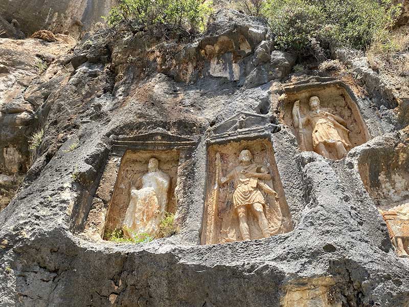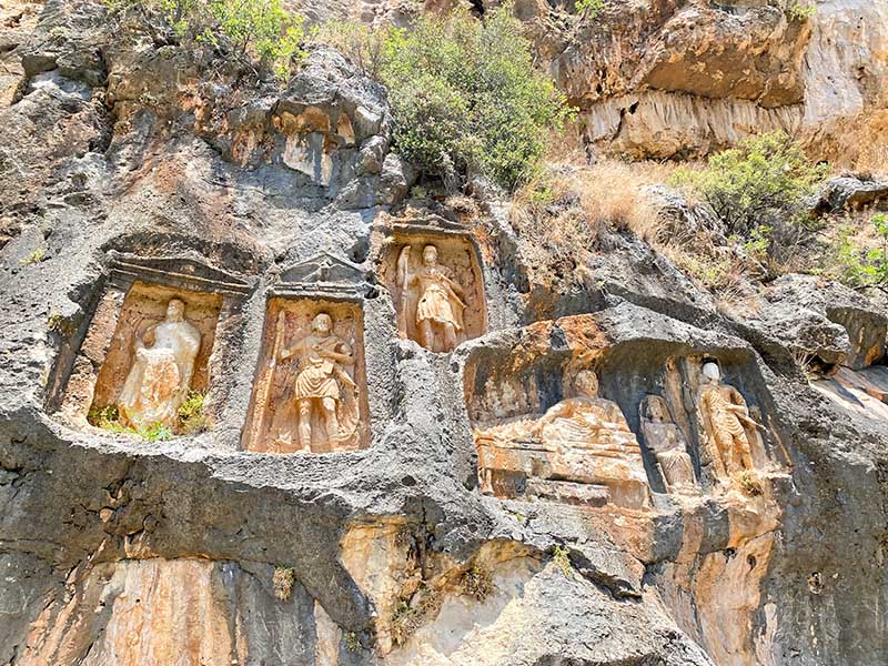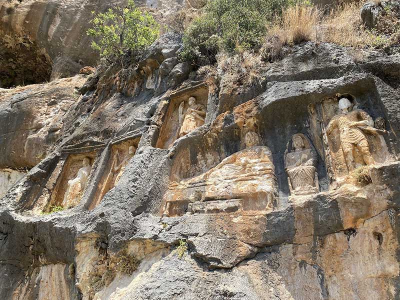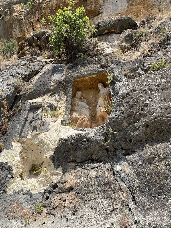 But of course the highlights are always outside of town, so move up the mountains we arrive near Imbriogion which is old church/cemetery buildings, right along the road so no walking required even so that is always a win win. Moving along we head to Pasli to explore the old ruins, still in tact in some places but the rest is just the remains of the walls, but luckily there is a local that sells us some vegetables for our dinner in the next coming days. This is all a gentle lead up for our visit to the men of rock! This was built in the second century AD and was believed to be a cult following, so we pull up in 40c weather, blazing sun, where is it?? Ohhh its down 100+m of straight down cliff trail almost, absolutely brutal climb down, going up was pretty bad now that I think back actually. But that would pale in comparison to the carvings which were absolutely stunning to see there in the middle of nowhere. I suggest paying it a visit if you are in the area that is for sure.