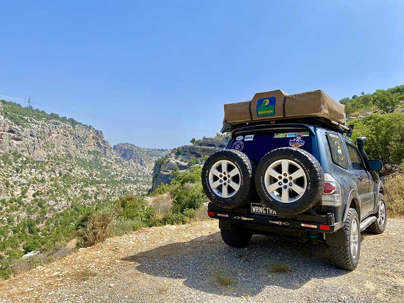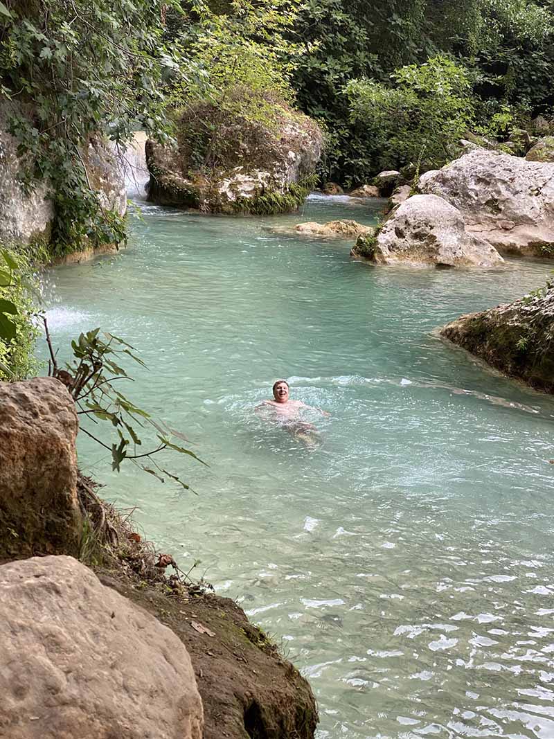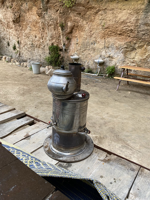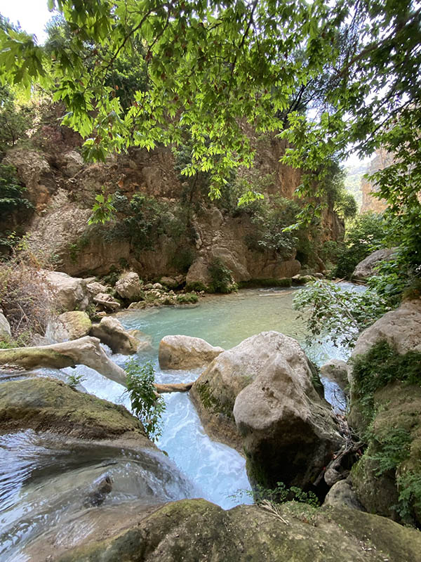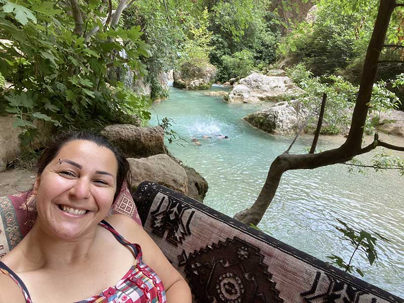 Back in the A/C we decide on where we will go eat, we find ourselves heading back into the mountains but it doesn’t keep going up, we are following a river, I like where this is going, we arrive drive past a small restaurant with a local at the gate he waves us down but we go past as we had a different place picked but as I cross the bridge I just went, you know what? This is far enough, we spin around and head in, and luckily we did, the whole place is lined with old tunnels from the romans! The water is the perfect colour and even a waterfall or 2. I mean can you really complain? I go for a dip and we enjoy some lamb chops, shisha, and some tea, of course we request tea in bulk and sit with the owner for a chat.
