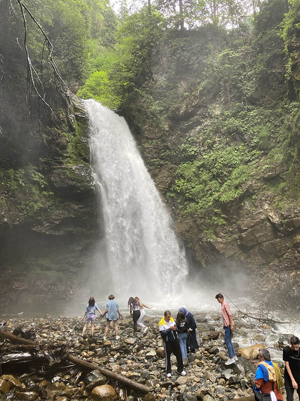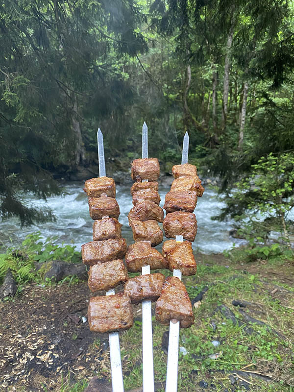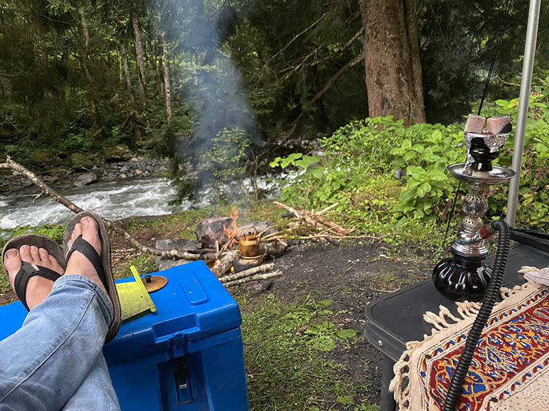 I stop in at the coffee shop and do a section of my course then motor on, Our first stop, a super crowded waterfall. Impressive, but very busy so tough to get a good photo. But worth the stop to see as who doesn’t love a waterfall and the road is tight and twisty. I don’t get far today though, only 50kms from my start point as I pull off next to the river for a camp. I spend the first bit cleaning up garbage as it is a lovely spot and sadly rubbish is a big problem here. But afterwards I am happy and settle in for a night of sheesha, kebab and tea. Tomorrow we go up and up and up!!!