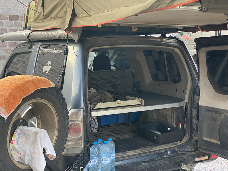 Nearing the peak, we spot a whole crew of hikers, it’s a great day for it. Slight breeze and sorta sunny. We finally do start the downward trek, finding once again, a super cool looking tractor. We end our day arriving at 3g’s camp and immediately begin stripping the vehicle. We have only today to really clean it, and a bit of tomorrow morning. Pina helps by sleeping in the back. Which makes my job easy as I don’t have to worry about where he has gone.
