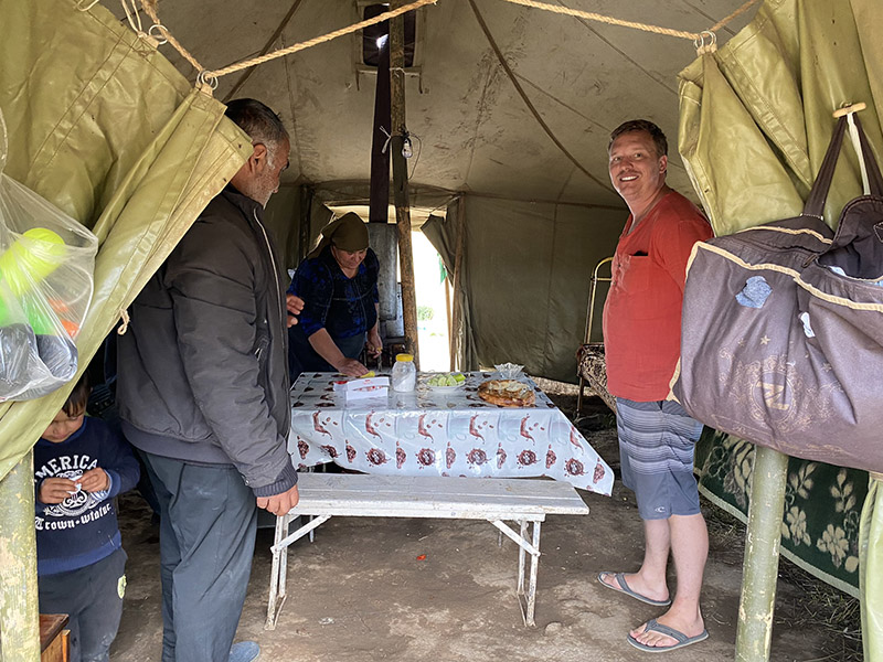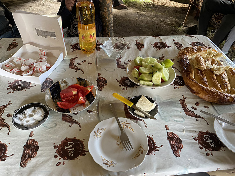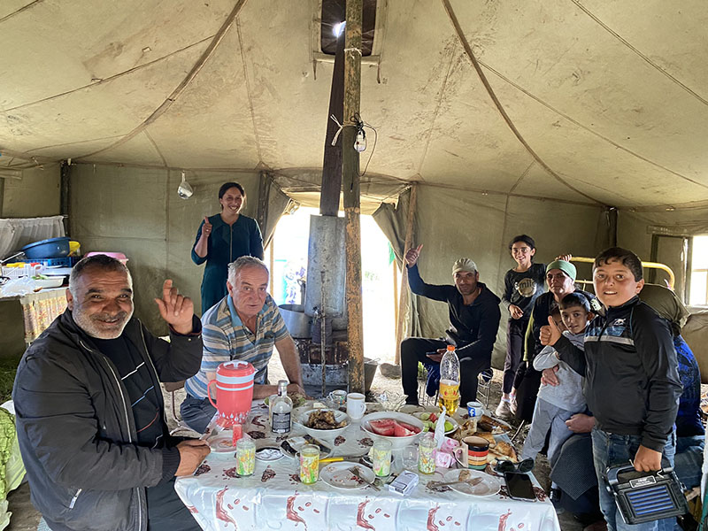 On our way up we pass a small camp, herders, Asareh wants to see, so I spin the wagon around and drop into the valley below, we arrive to a warm welcome from the men in the area, then the women showed. We are quickly ushered into the main tent, where we are supplied breakfast, they are so friendly, and eventually we find out they are Kurdish, this is after 40 minutes of struggling to translate, one of the mothers dropped a word Asareh knew. Then after that it was smooth sailing. We took some photos, left them with chocolate and whiskey and carried on.