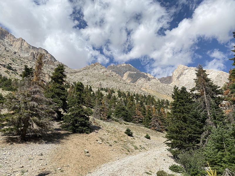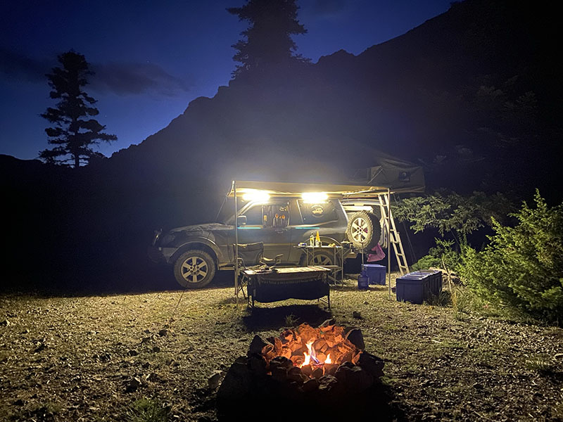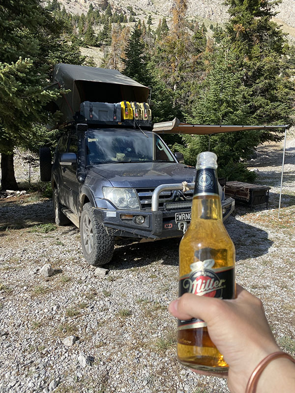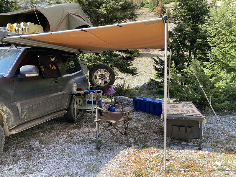 Pullin into the campsite it is busy, there is a solitary tree for shade left and no even ground so I park and grab a rock to start leveling the car, the camp site manager walks up and between hand signals I finally understand he is asking if I want access beyond the locked gate, due to having a 4wd. You bet I do. This gets me an extra 5kms into the mountains where there is no one except some shepherds. The wind is blowing a bit and I worry it will like this all night so I tuck right into the trees for protection, and set up for my last night on the road.