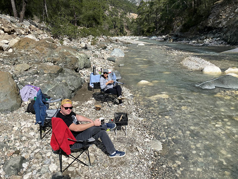 We also witnessed a few vehicles stuck where I go to mangal. The river is deeper than it looks and rocky bottom, so the cars sink and that’s it. Pretty exciting, we helped the van owner and were rewarded with tea. So, it always pays to be a good citizen. Shame we didn’t have the wagon as that would have made it easier to get everyone unstuck.