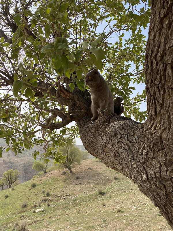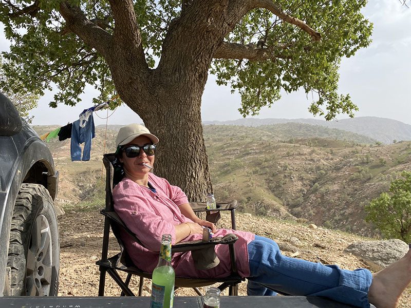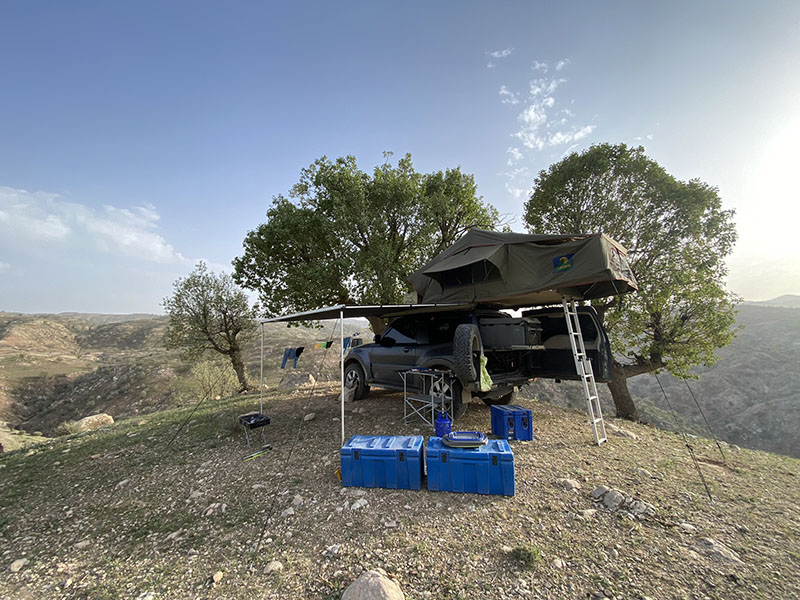 But it all pays off as we find a stunning little area to pull up. No one for miles for once. We set up and enjoy the view as the cat dose his thing in the trees, as he is slowly getting better at climbing. As we sit Asareh noticed a plant called kangar, which is a deep rooted thistle which you can pick, cut the roots off, boil the roots and add it to yogurt, this stuff is amazing. So we spend the next half hour prying these little plants from the ground. Its tough work but so worth it.
