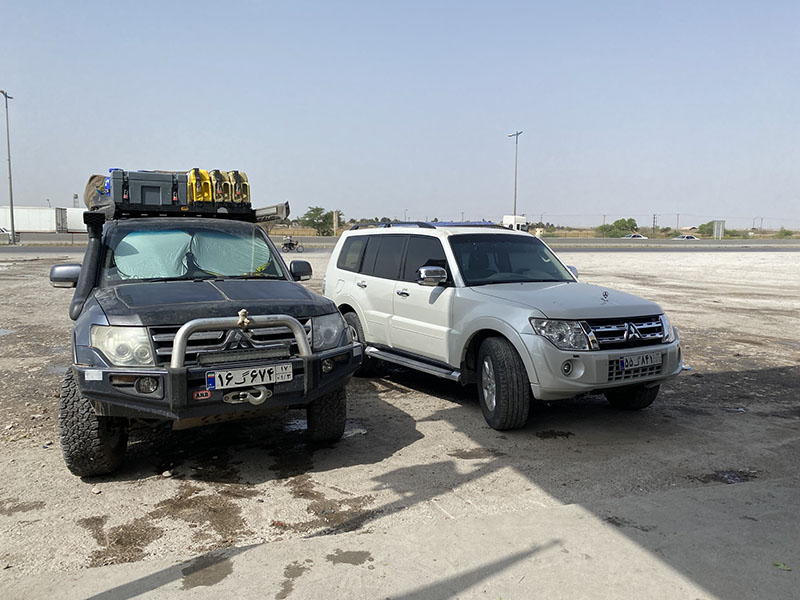 We stop after the damn at a truck stop for lunch, stunning feed, even park next to a bog stock Pajero, here they get the hood ornament and better chrome it seems. And honestly for the price it makes sense. Our plan for tonight is to head over the mountain pass the get to the Iraq side of Kabir kuh, the road winds and climbs for what seems ages.