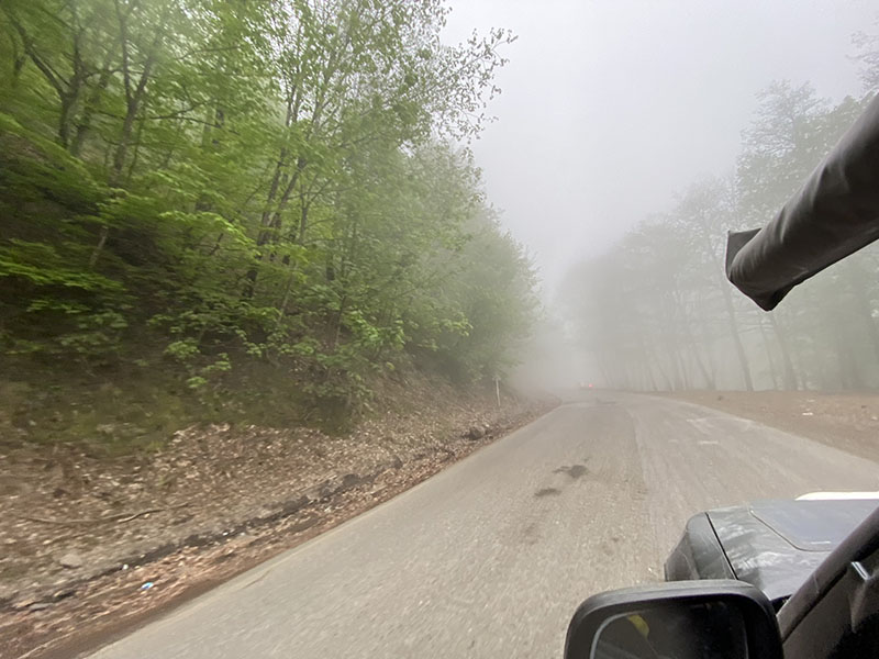 Well not really, but it sure looked close with the green rolling fields. Packing up in the morning the fog is heavy heavy, maybe 30M visibility, and in some places you can barely see past the hood. This is a nightmare to drive in as the drivers here cant be trusted to stay on their respective sides of the road even on a sunny day. It’s a slow go, with speeds never exceeding 40, and honestly most at 25-30 to be safe. But amazingly we came around a corner and POP! Straight out of the fog and sunny.