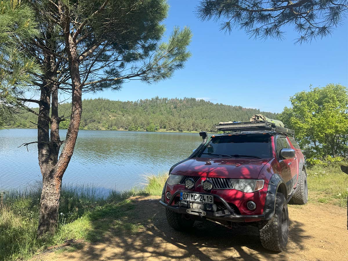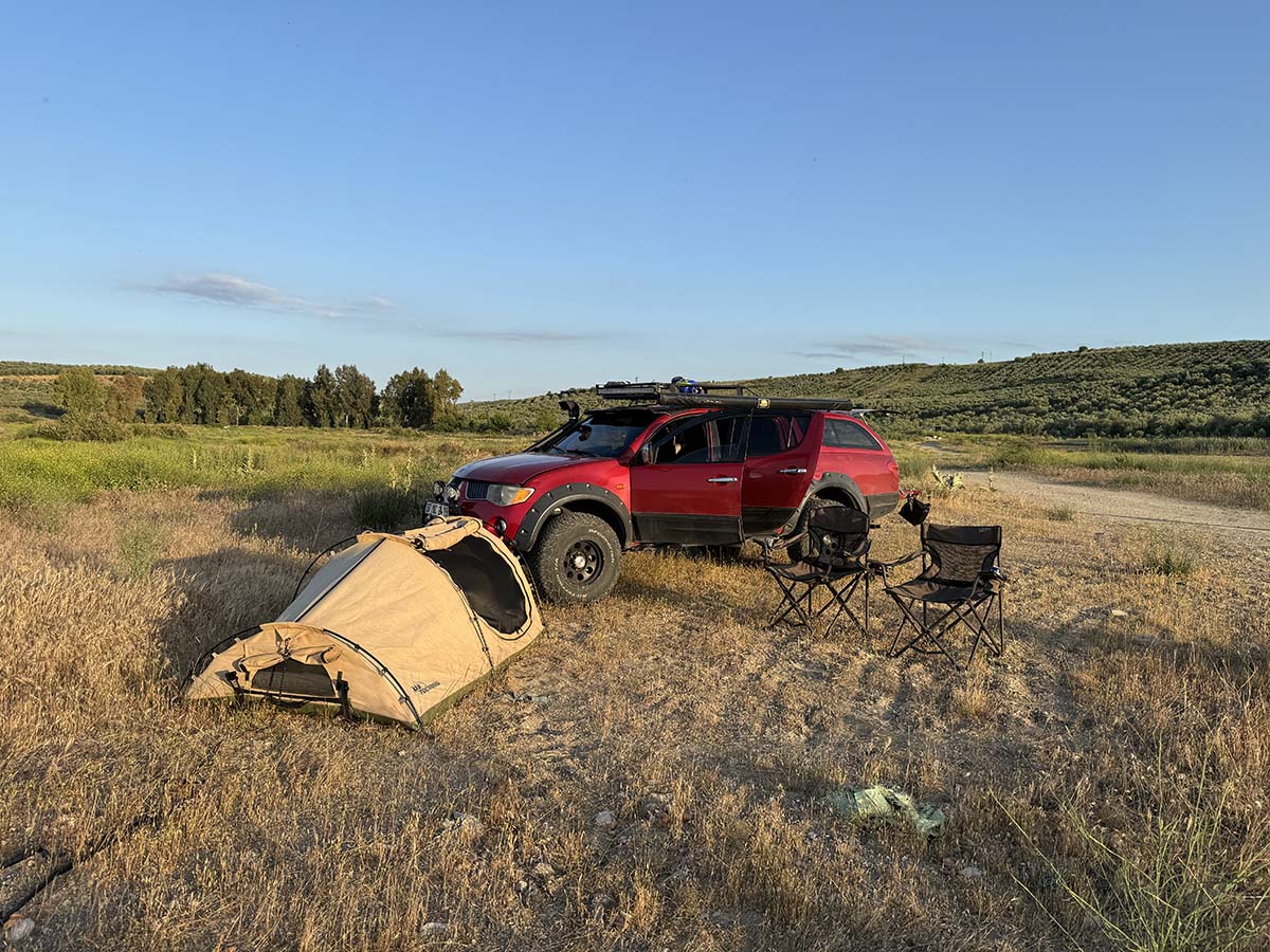 With some quick work I install a second battery, fridge, and an isolator setup. With the L200 ready to go we begin our journey to, Romania! Why not mix it up. Of course we hit a few other countries on the way and we start our trip from Antalya and spend 2 days getting to the Bulgaria border. Our days are mainly just driving, but our camp on night 1 was lovely if you of course ignore the mozzies. Small problems right? Pina loves it as the grass is long and he is gone.