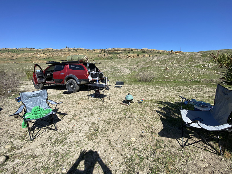 On our spare day, we head towards the mountains, but never quite reach them, but we did find a good spot to pull over to cook.