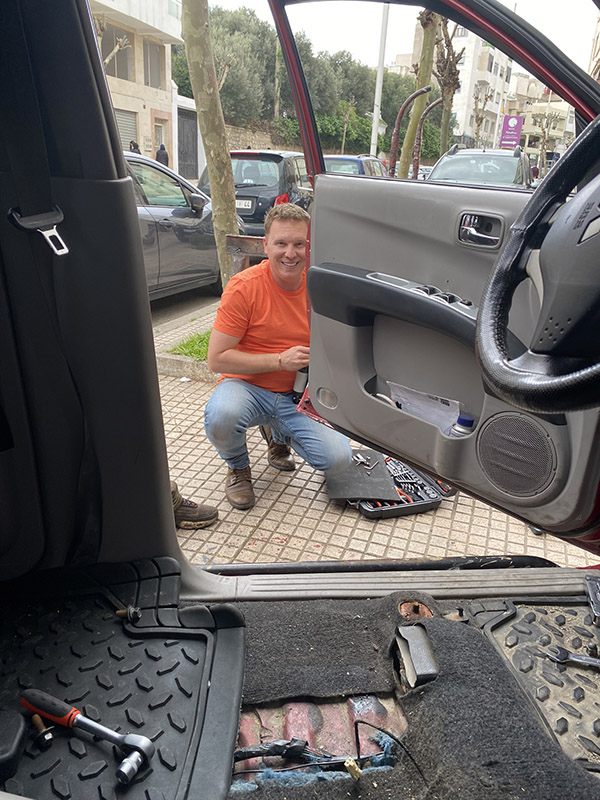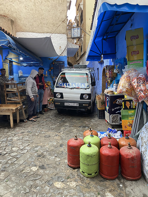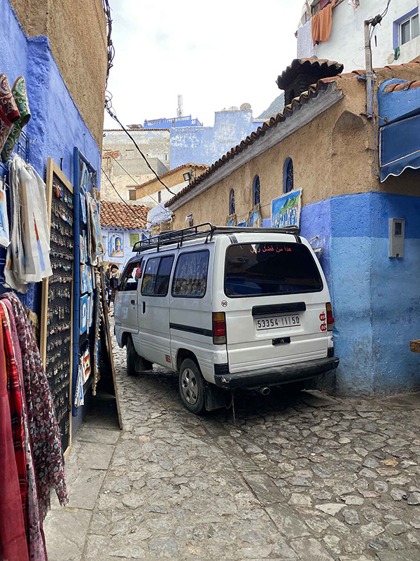 Seeing blue, and lots of it, something about Morocco is every city has a colour they stick with. Today, we are headed to Chefchaouen, the famous blue city. But of course, our day starts in town with me looking for someone with a drill to drill some holes for us to mount our air compressor. Some searching later, we find a shop, and I remove the front seat, it’s a nice little 45-minute job before we are back on the road, I didn’t install the compressor yet, this will come later in the trip.