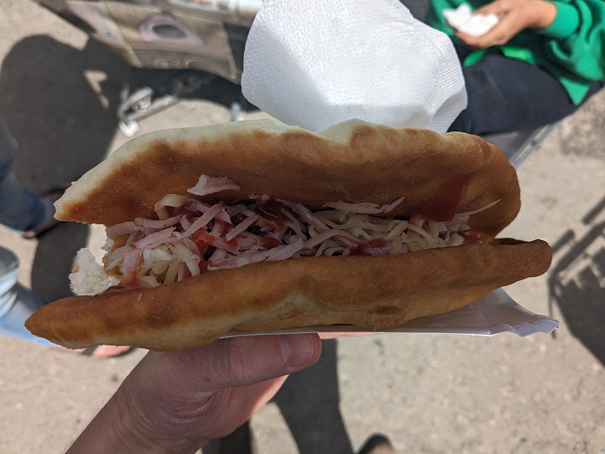 Once back at the ute we grab a bite to eat at the market, some sort of deep fried dough with cheese and meat, was really good but it must be eaten as soon as its ready otherwise it will go rock hard. They were also selling bear meat sausages. Like I said earlier apparently there is a slight bear problem.