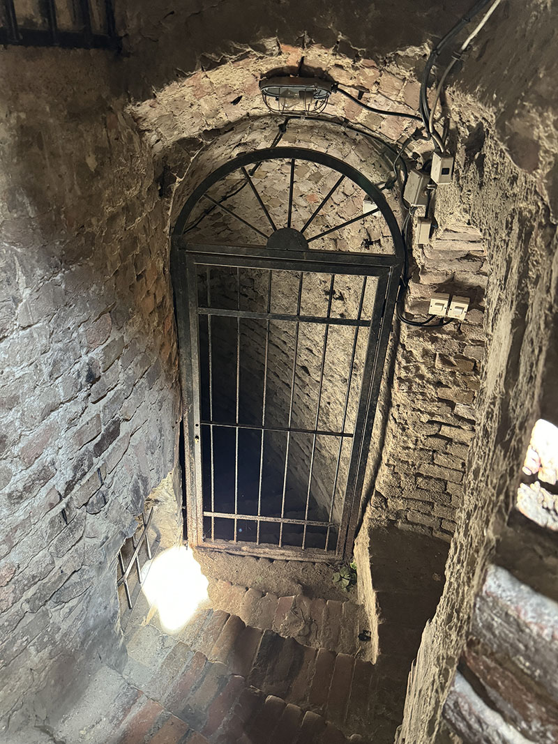 There is a neat well that is about 10 stories deep, the gate is closed, but we did try. Don’t drop your phone down there. It was cooking outside, and so cool in here, so we also just chilled to cool down for a bit in here.